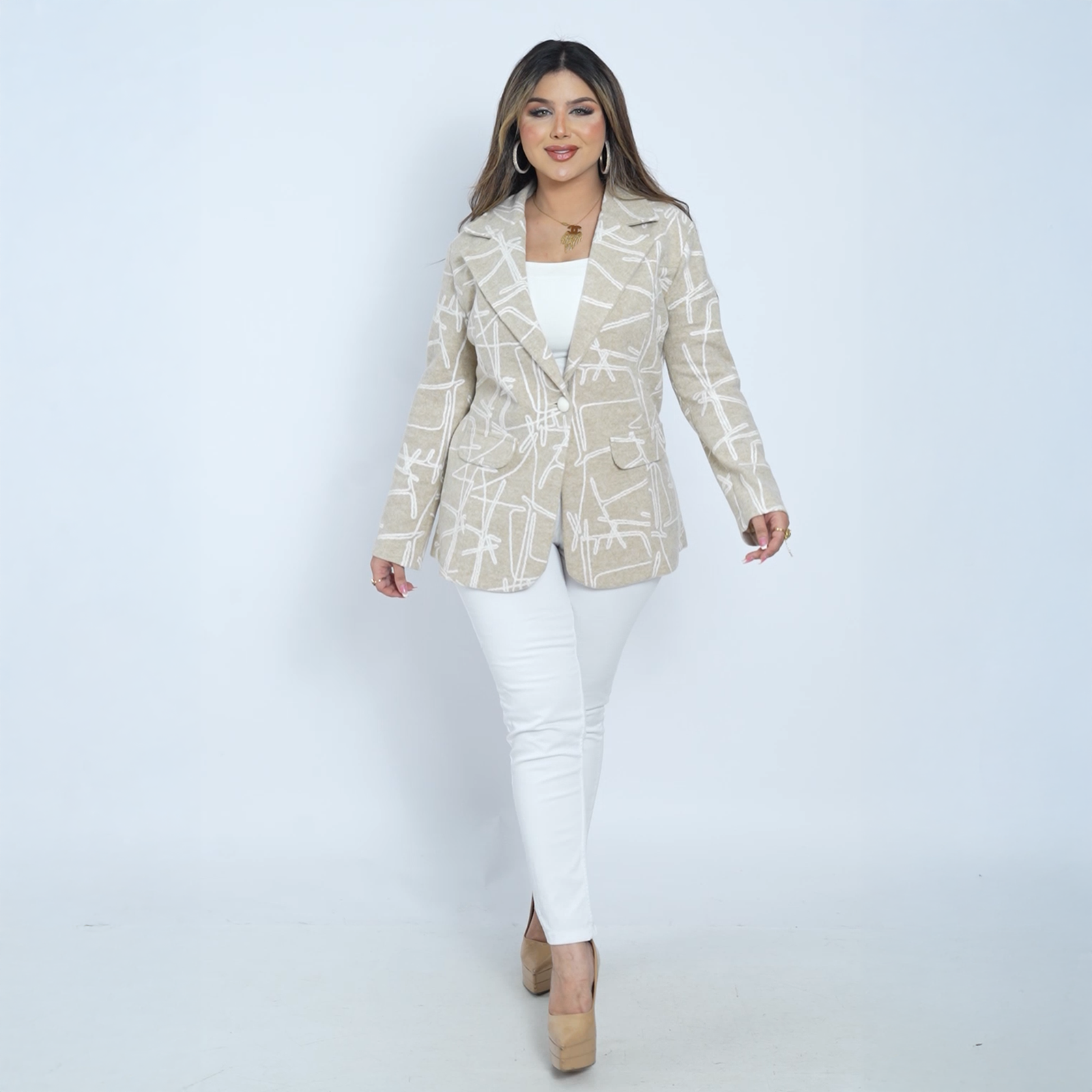 This blazer is the perfect choice if you want a blend of luxury and modern style. Designed with refined abstract patterns and crafted from premium fabric, it offers both comfort and sophistication.
