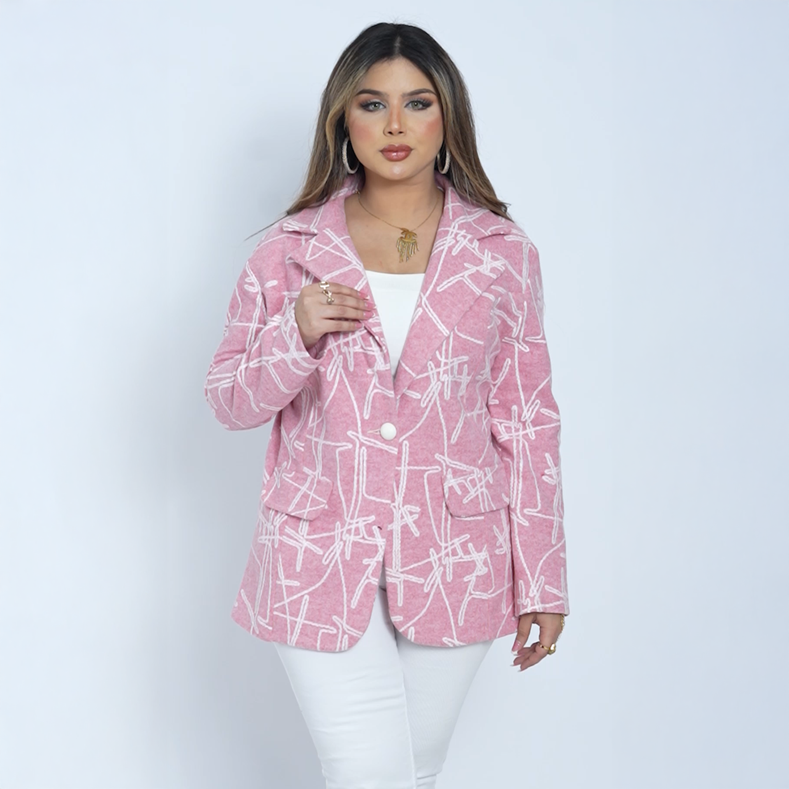 ✨ Shine with renewed elegance in this luxurious pink blazer from NAI Trend! ✨